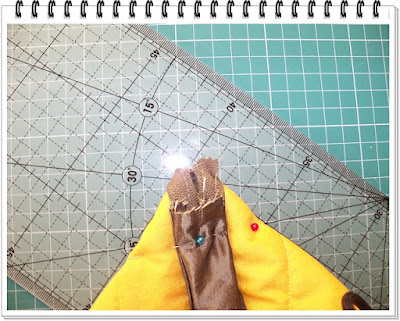 nakon što sam prošila trokut višak sam odrezala........i taj šav ću opšiti šarenim platnm......